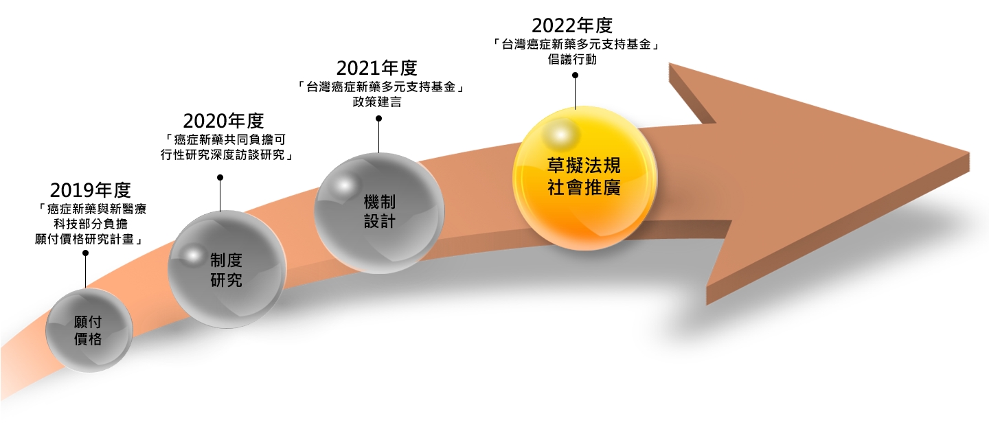 遂透過2020年「癌症新藥共同負擔可行性之專家意見研究」,訪談並彙整各方專家意見,並舉辦「癌症新藥可近性工作坊」,各方專家之意見,研擬可行之制度方案,以期促進新藥可近及健保永續