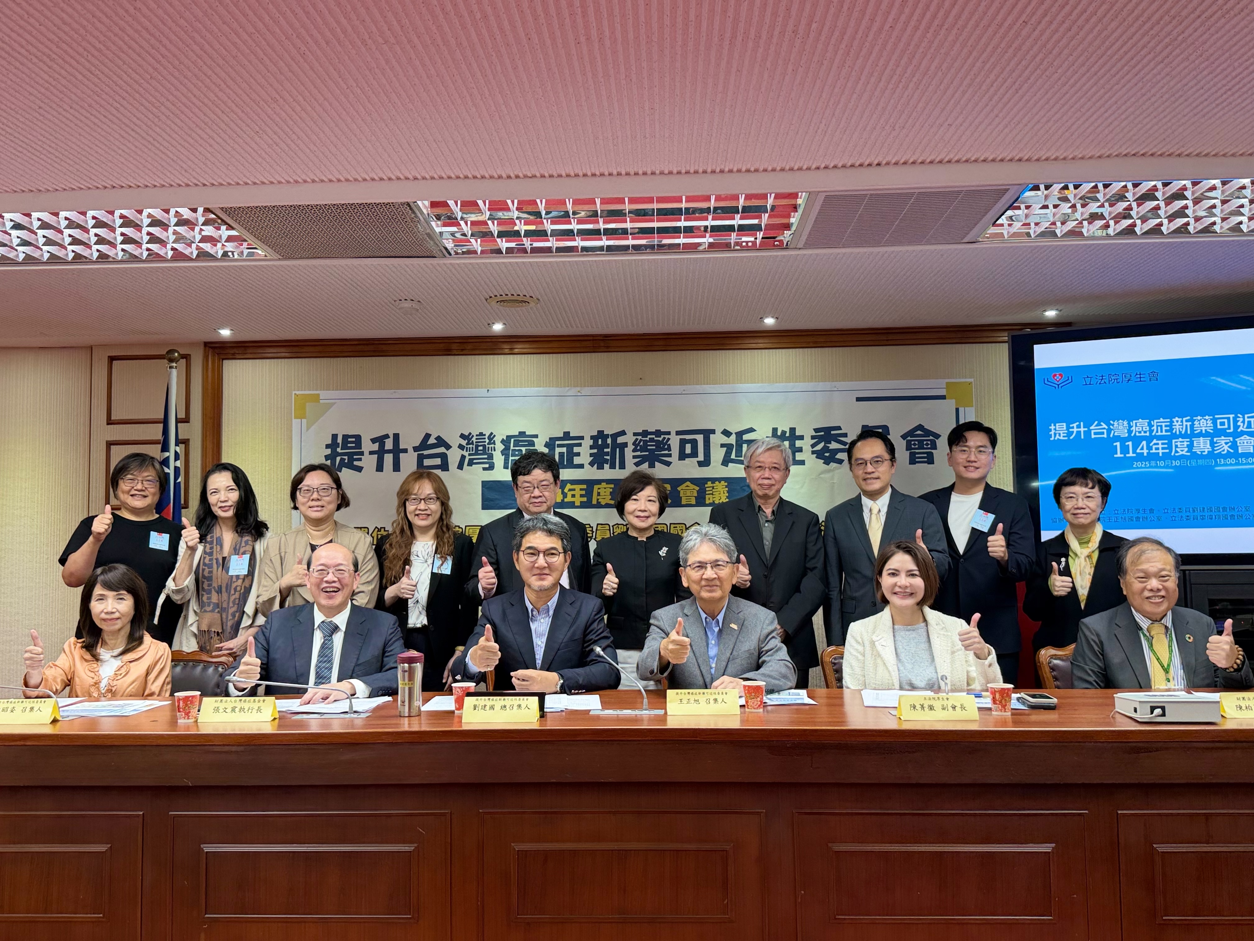 立法院厚生會於 2025年10月30日 召開「提升台灣癌症新藥可近性委員會」114年度專家會議,由總召集人劉建國委員主持,陳昭姿、陳菁徽、王正旭等多名跨黨派立委、專家學者與病友團體代表共同研商「癌症新藥基金」的法制化、財源規劃及永續運作。會議結論指出,癌症新藥基金雖已上路,但仍缺乏法律位階與長期財源,已有106位立委連署提出癌藥基金法制化草案版本,請行政院應儘速提出《癌症防治法》與《國家醫療科技評估中心設置條例》草案版本,送進立法院審議。會議中專家與病友團體也呼籲,國家應整合各項可行的永續財源,依據前瞻科技評估、癌症國情與高齡社會需求,長遠規劃「台灣癌症新藥給付藍圖」。